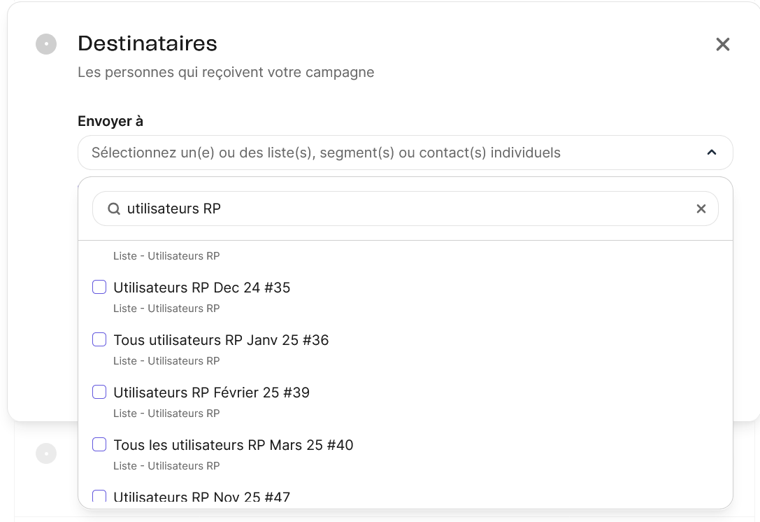 - Destinataire : Utiliser la même liste